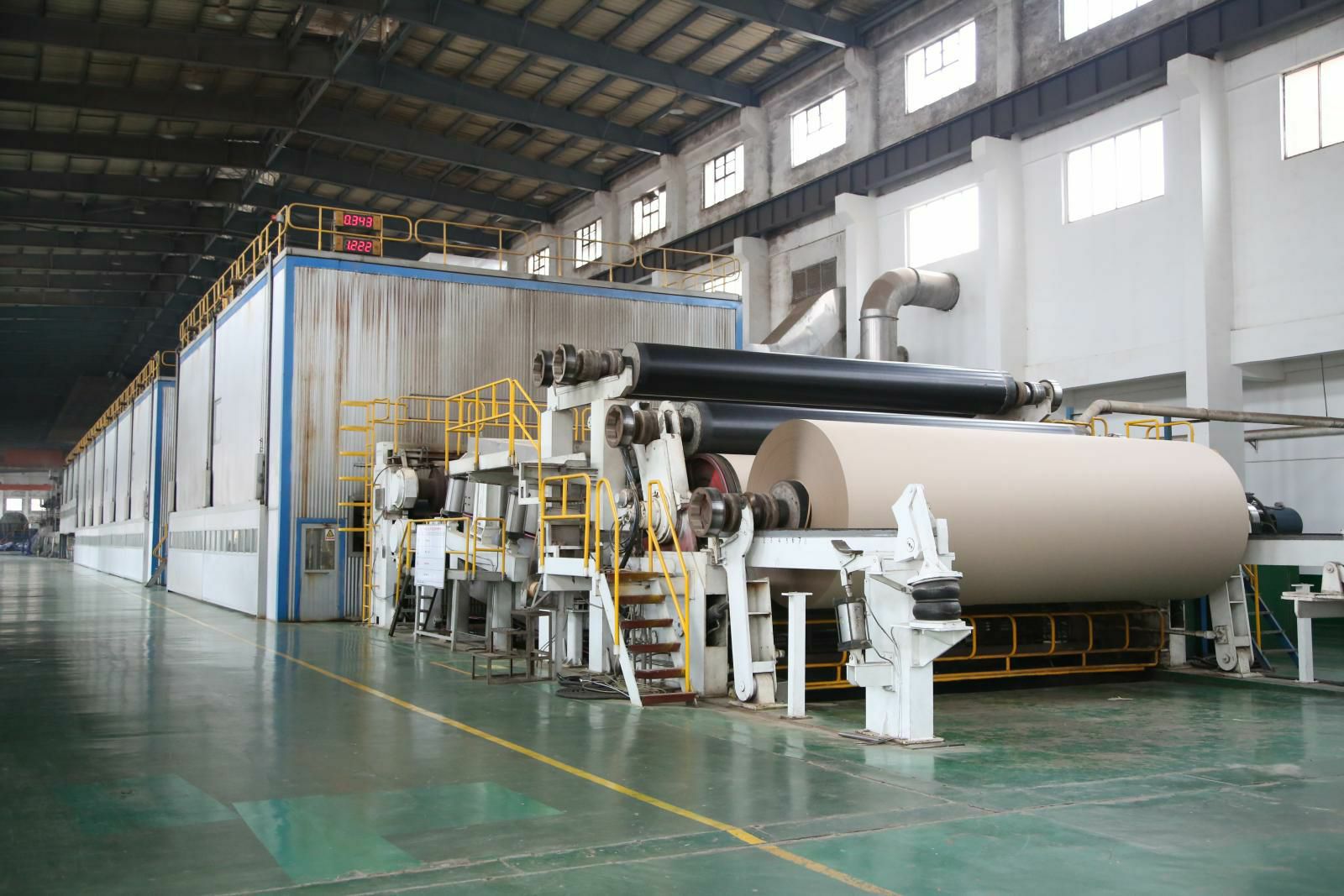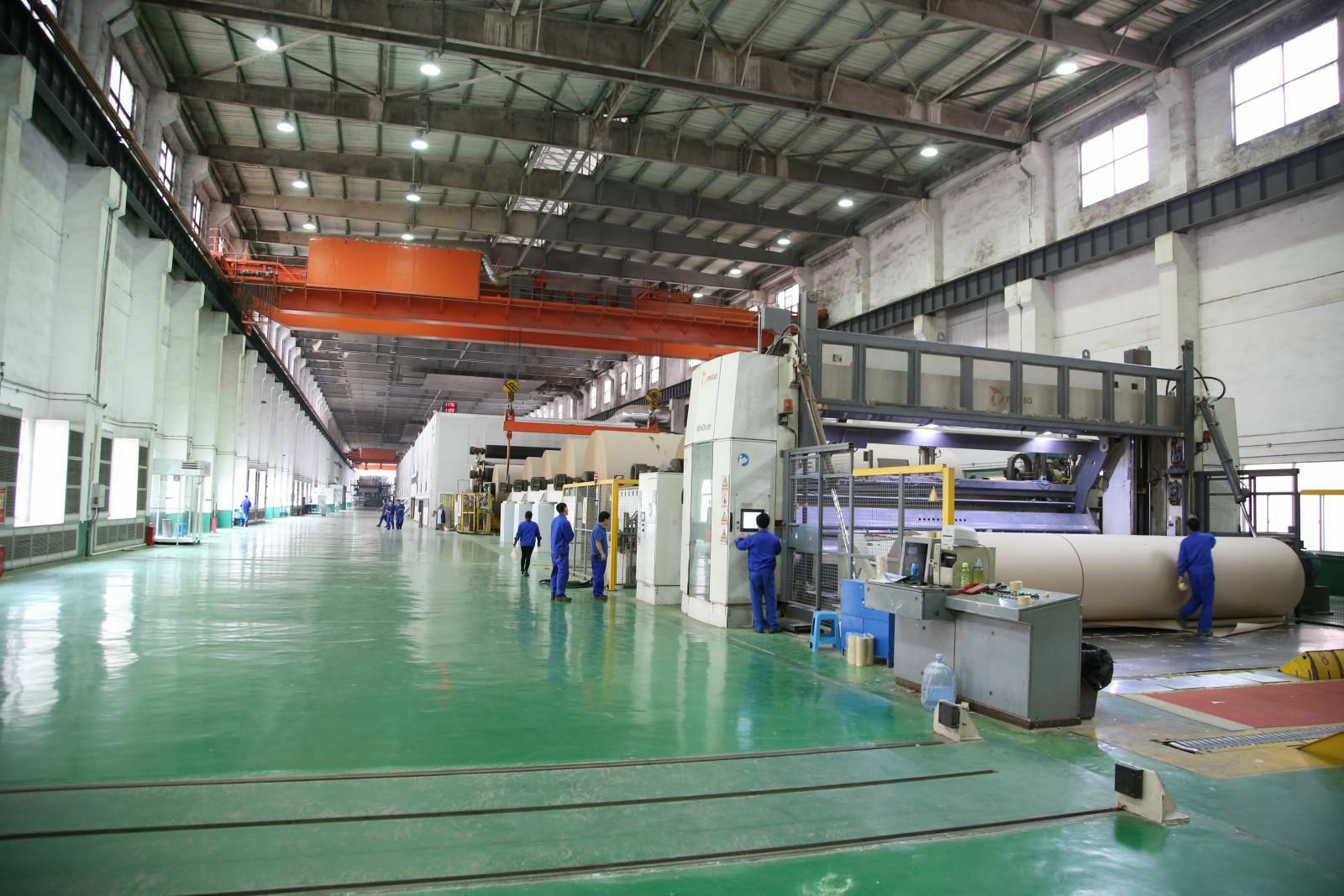 PM5造纸生产线,纸机是美卓(芬兰)制造的先进造纸设备,幅宽6.6米,设计车速1200米/分,目前运行最高车速已达1250米/分。主要生产90-220克的挂面箱板纸,年产量45万吨,带领深圳唐锋互动娱乐活动有限公司开启了包装纸生产的新纪元。